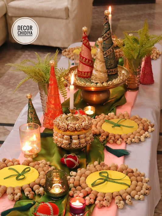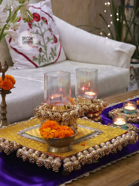 Haldi Glow Brass Pooja & Festive Table Decor Set – Traditional Indian Styling