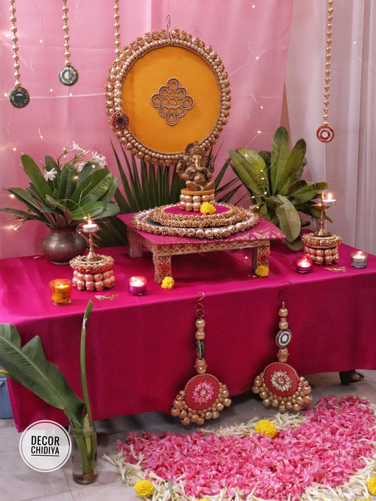Kolam Katha – Pink Ganpati Table Decor Set (14 pcs)