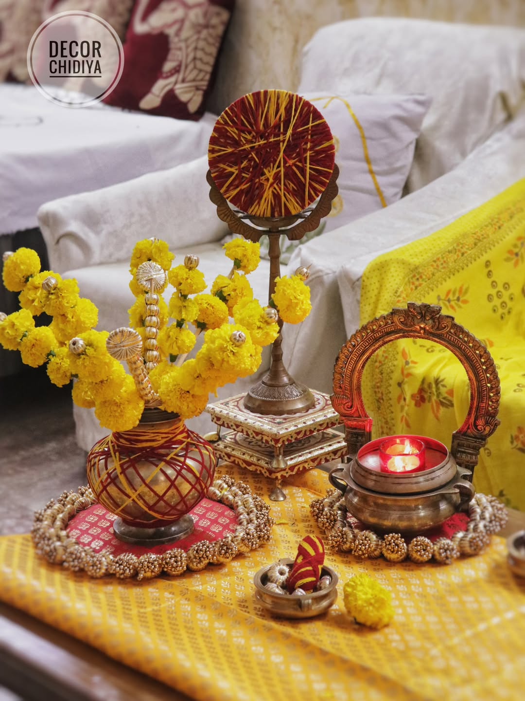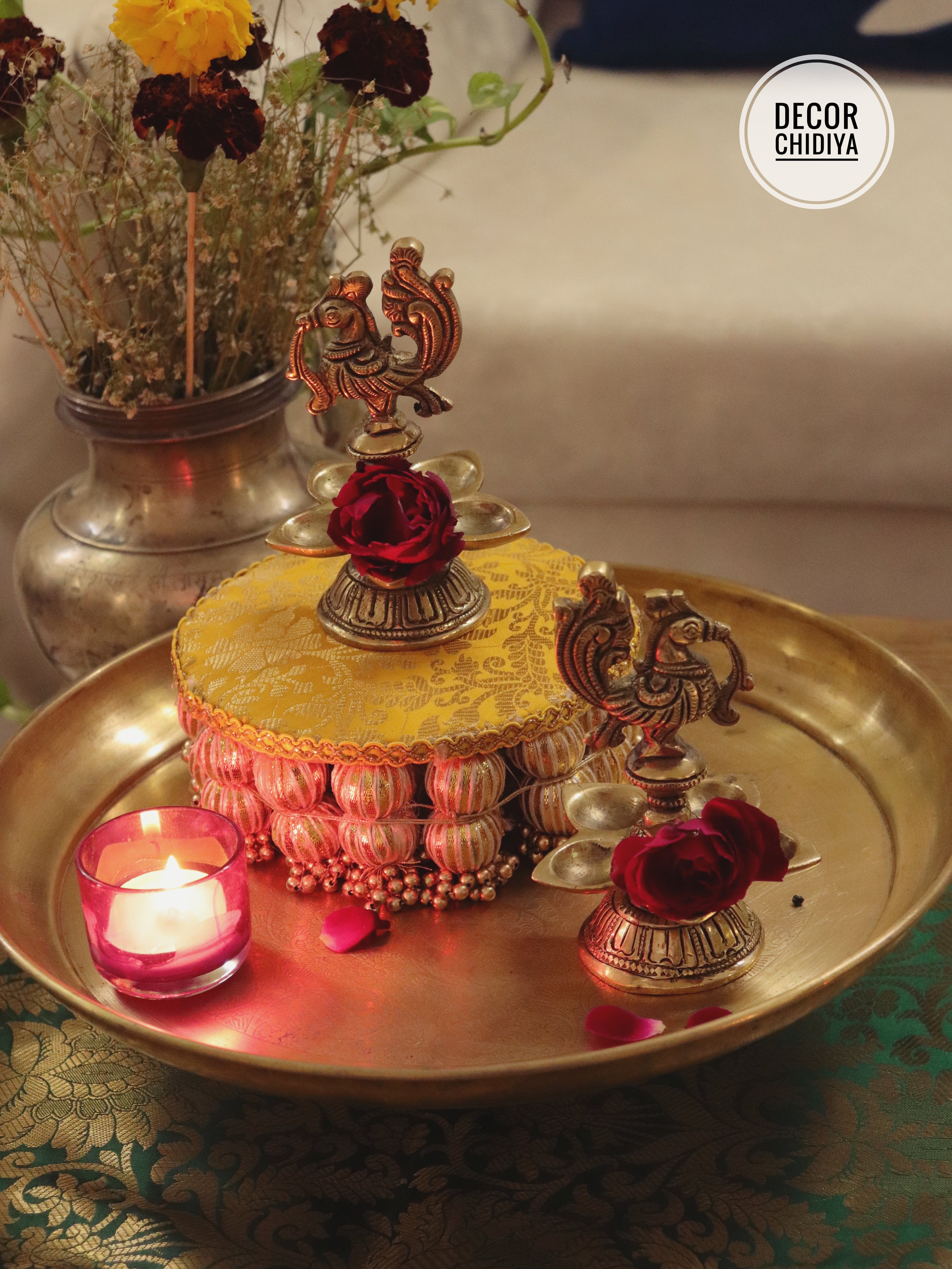 Haldi Glow Brass Pooja & Festive Table Decor Set – Traditional Indian Styling