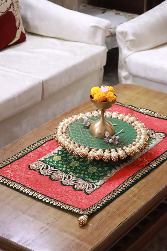 Hunar – Shree Yantra Placemat- vibrant | Handmade Banarasi Table Decor | Various Sizes