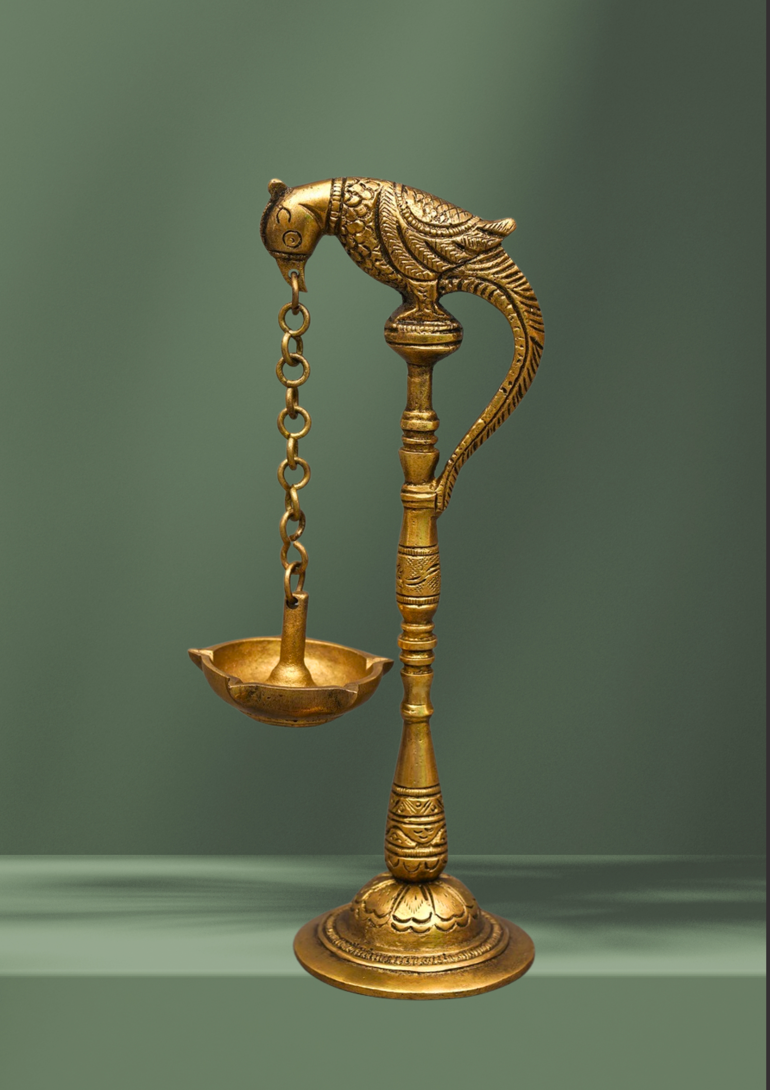 Handcrafted Brass Parrot Hanging Diya – Pair