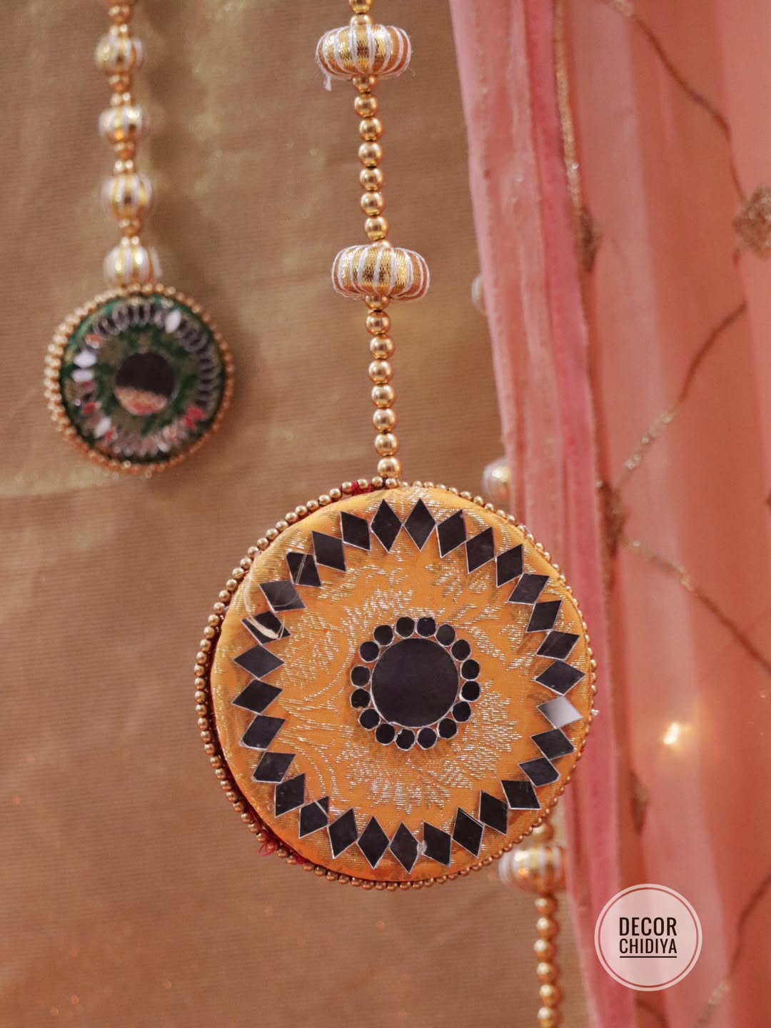 Surya Mandap - Royal Mirrorwork Pooja Decor Set – Handcrafted Traditional Backdrop & Table Styling