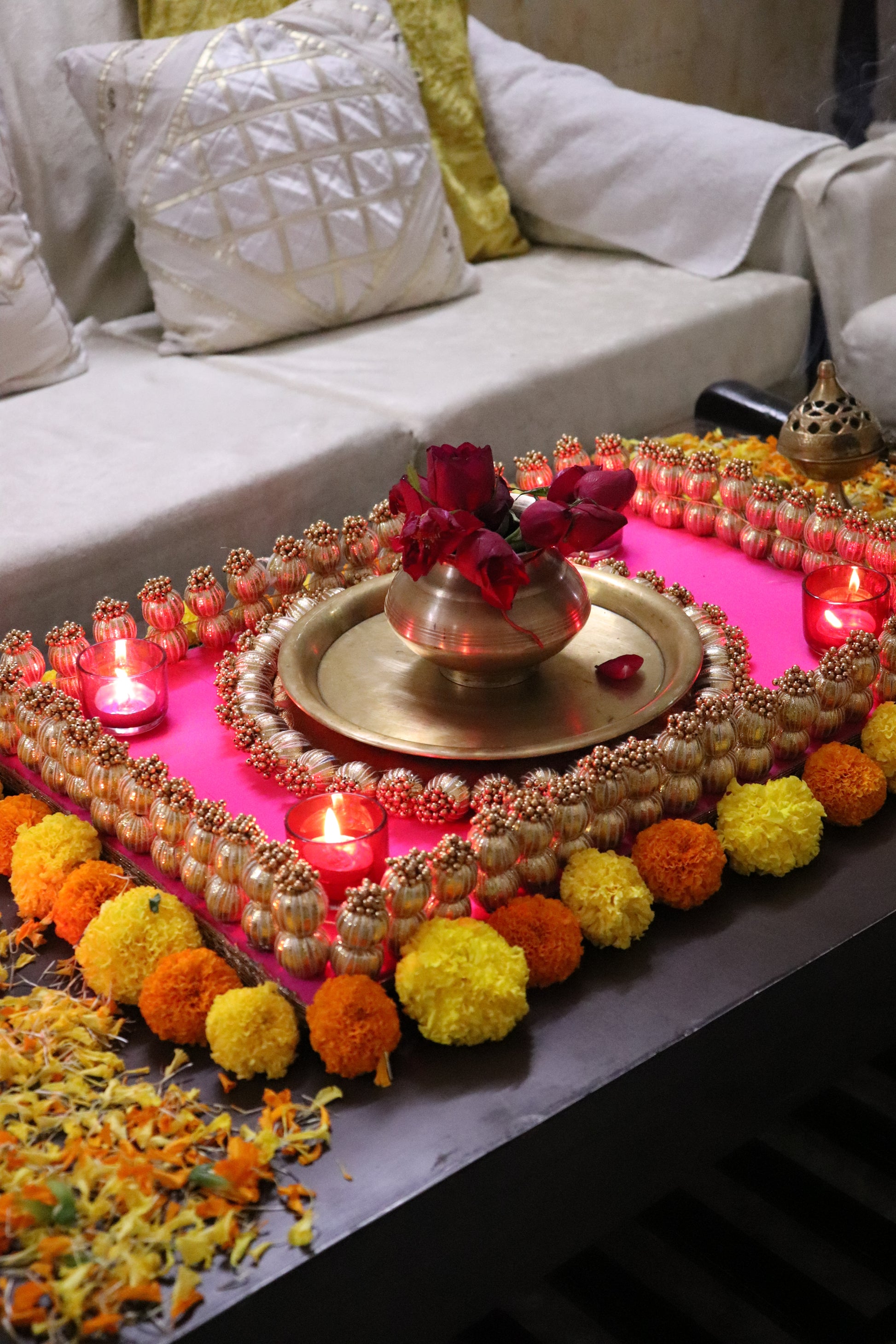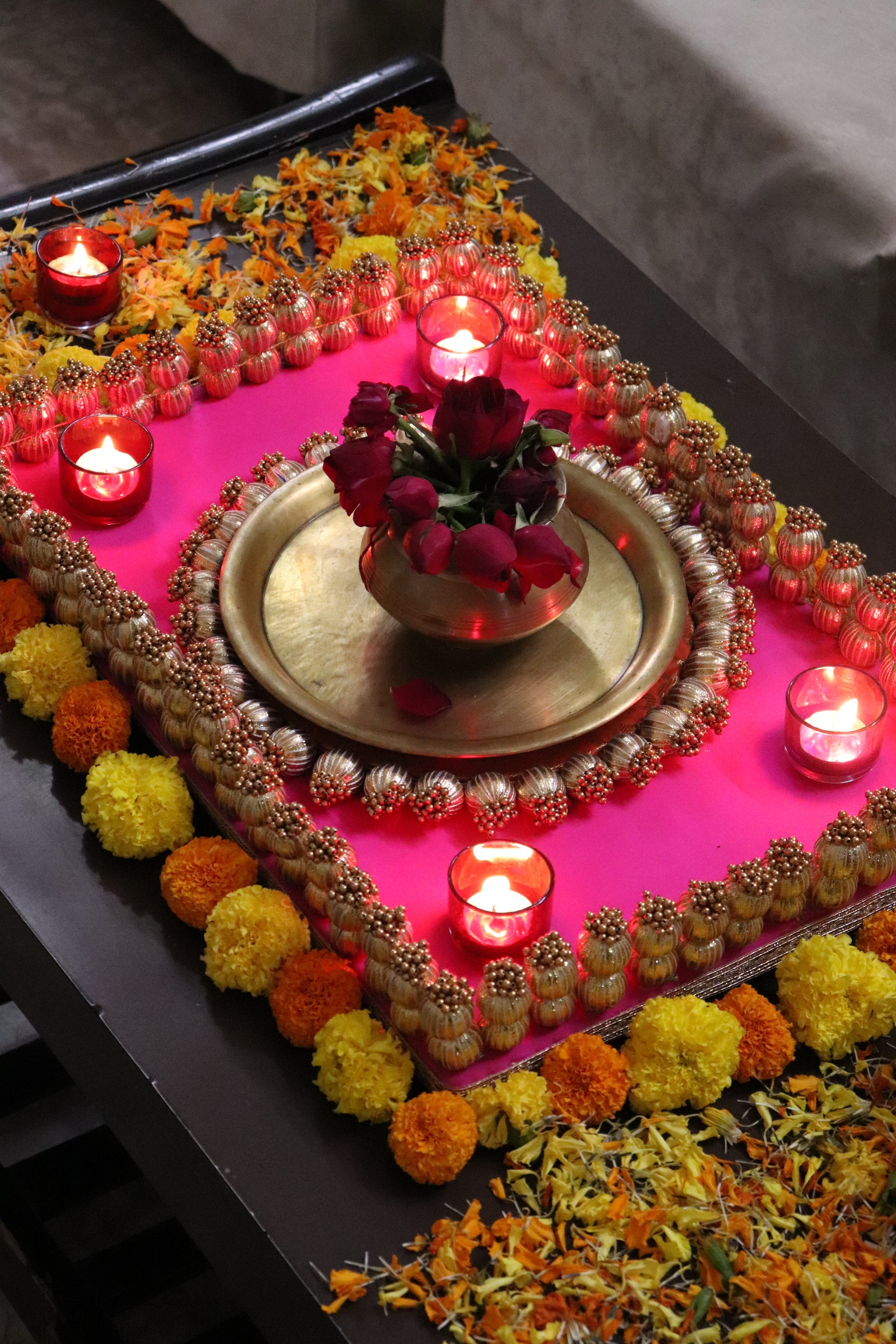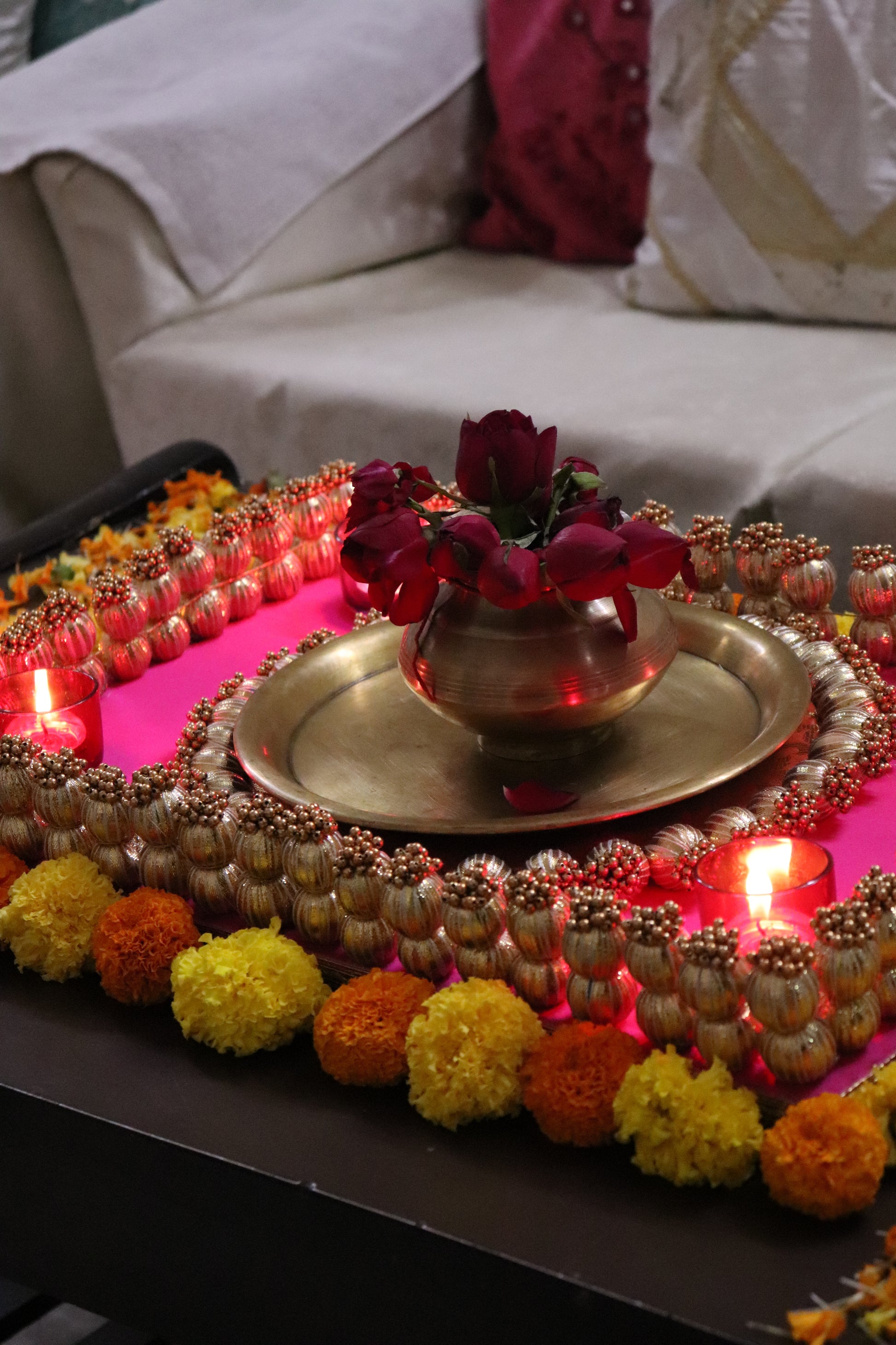 Gulabi jalkan- Pink dropping tassel placemat rectangular - Pink and gold
