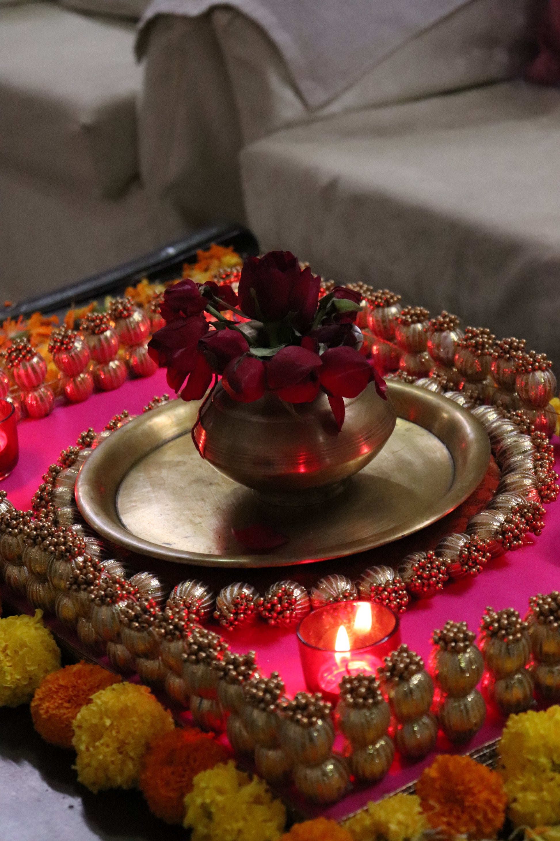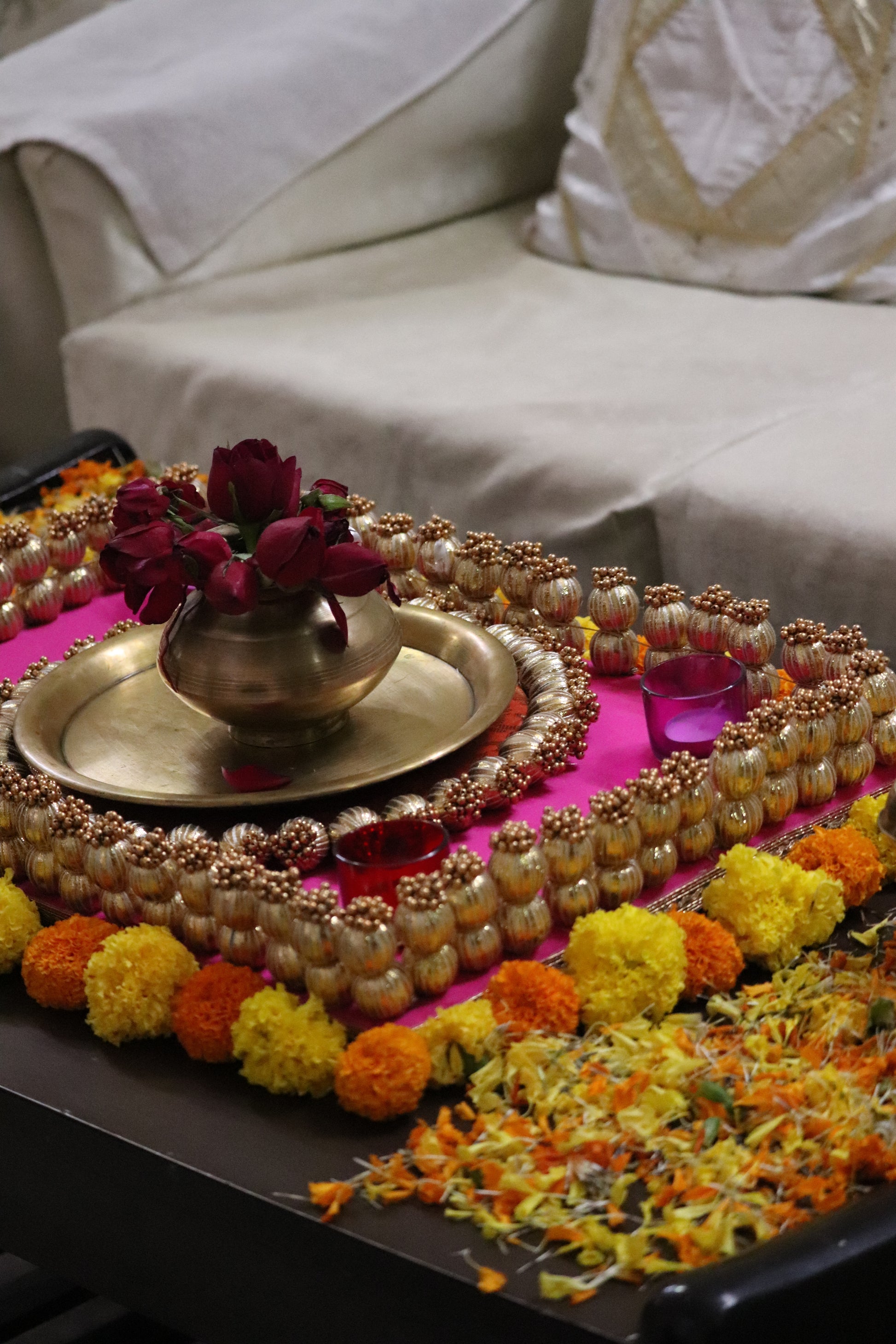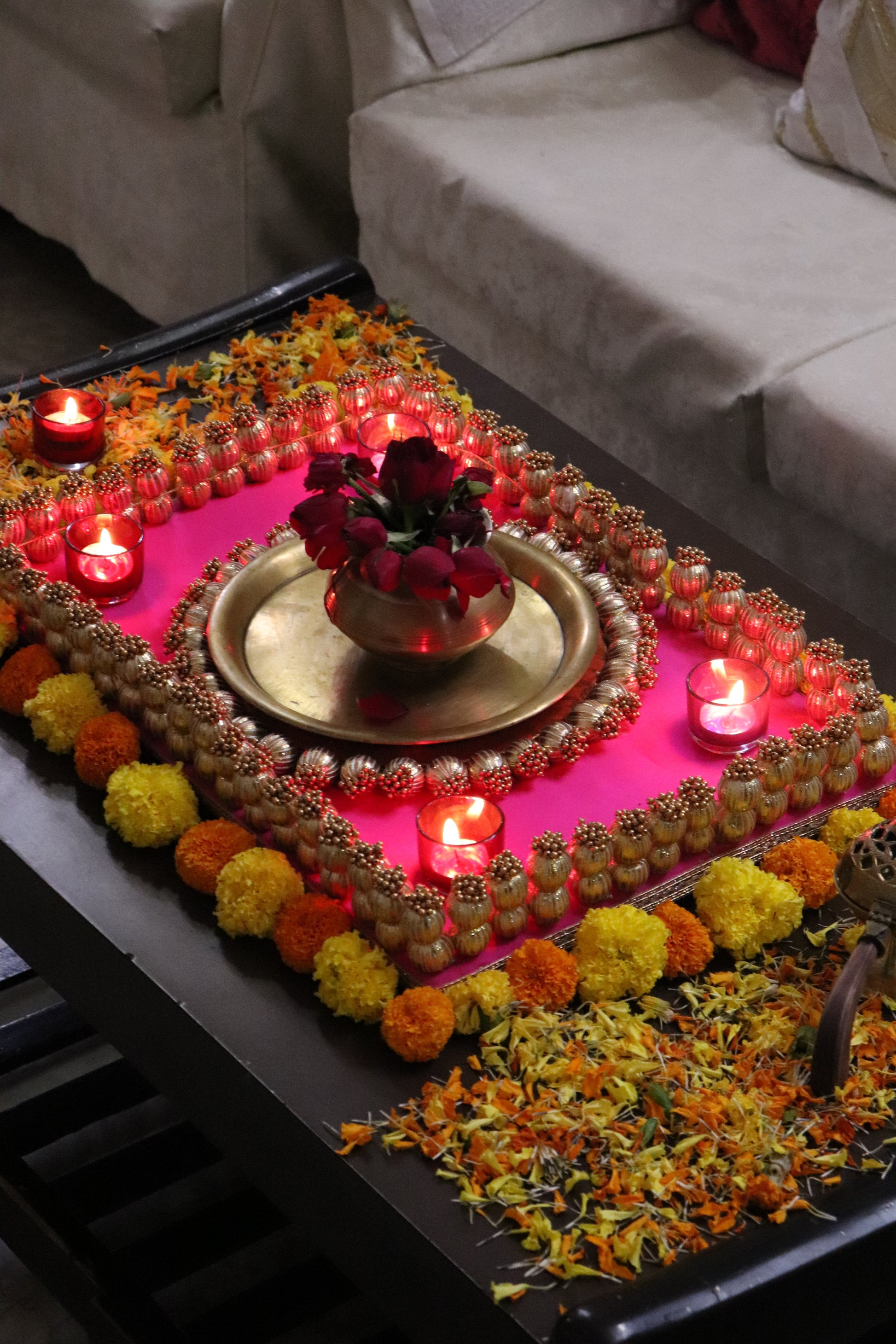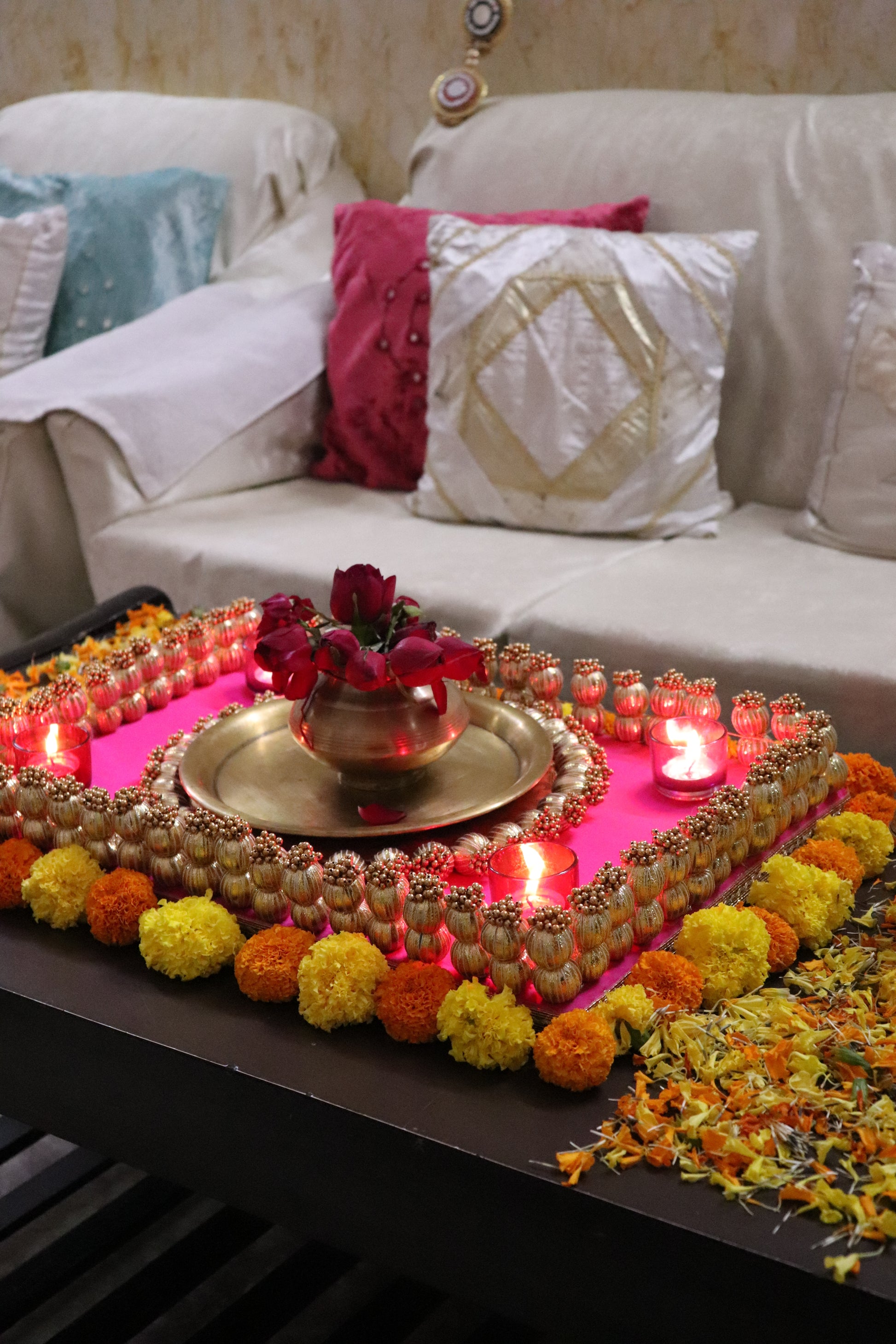 Gulabi jalkan- Pink dropping tassel placemat rectangular - Pink and gold