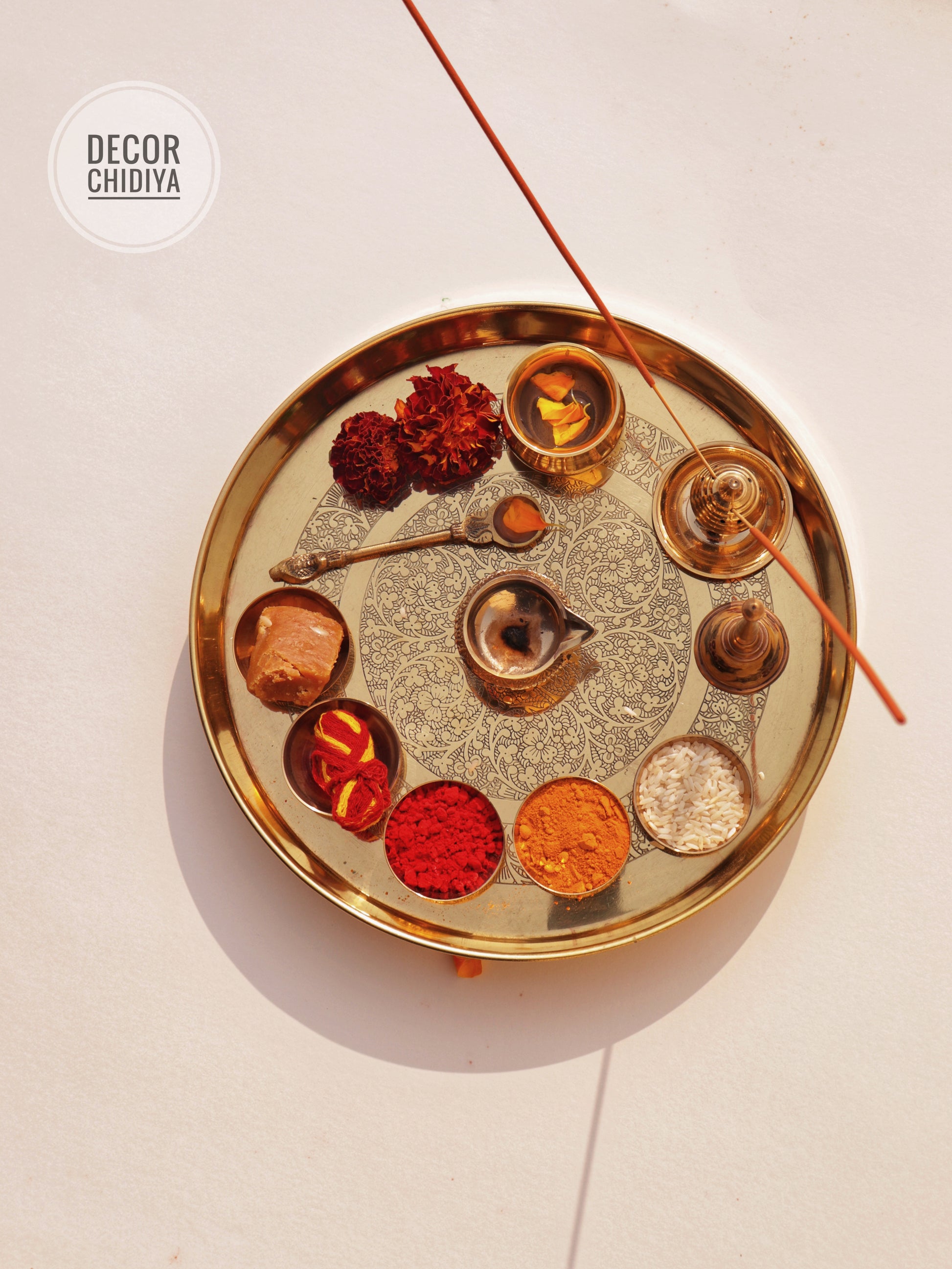 Pure Brass Pooja Thali Set β 12 Pc | Premium Puja Plate for Home Temple